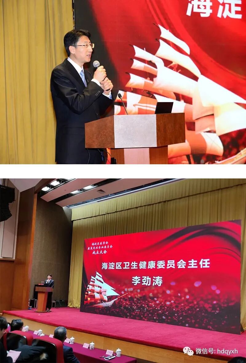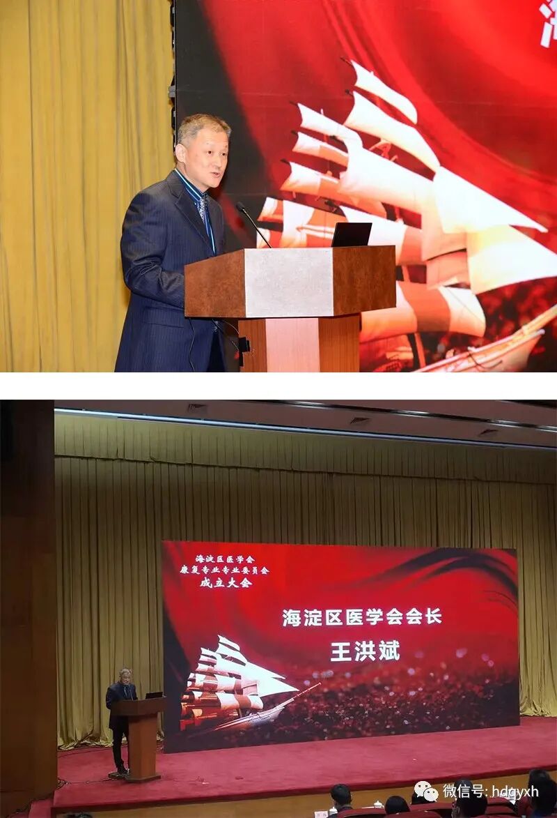 海淀区医学会会长王洪斌,对海淀区医学会康复医学专业委员会的成立及各位当选委员表示祝贺,并对筹委会的努力表示感谢。